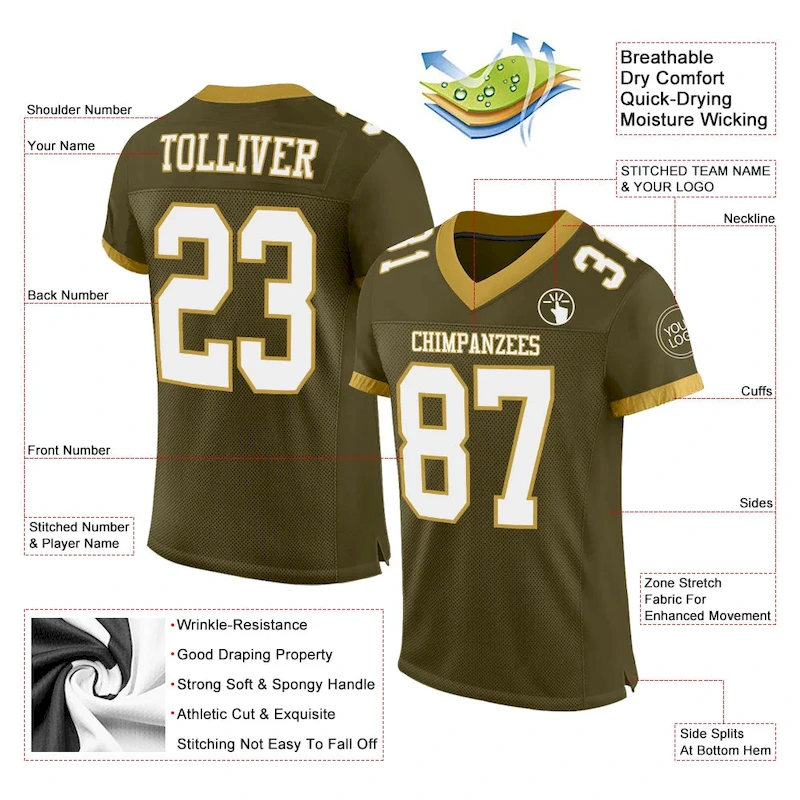 £27.99Custom Olive White-Old Gold Mesh Authentic Salute To Service Football Jersey