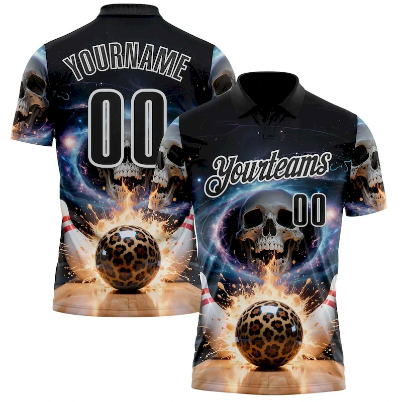 £27.99Custom Black White 3D Galaxy Splash Leopard Print Skull Bowling Performance Polo Shirt