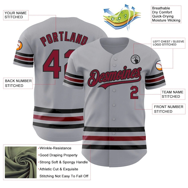 Custom Gray Crimson-Black Line Authentic Baseball Jersey