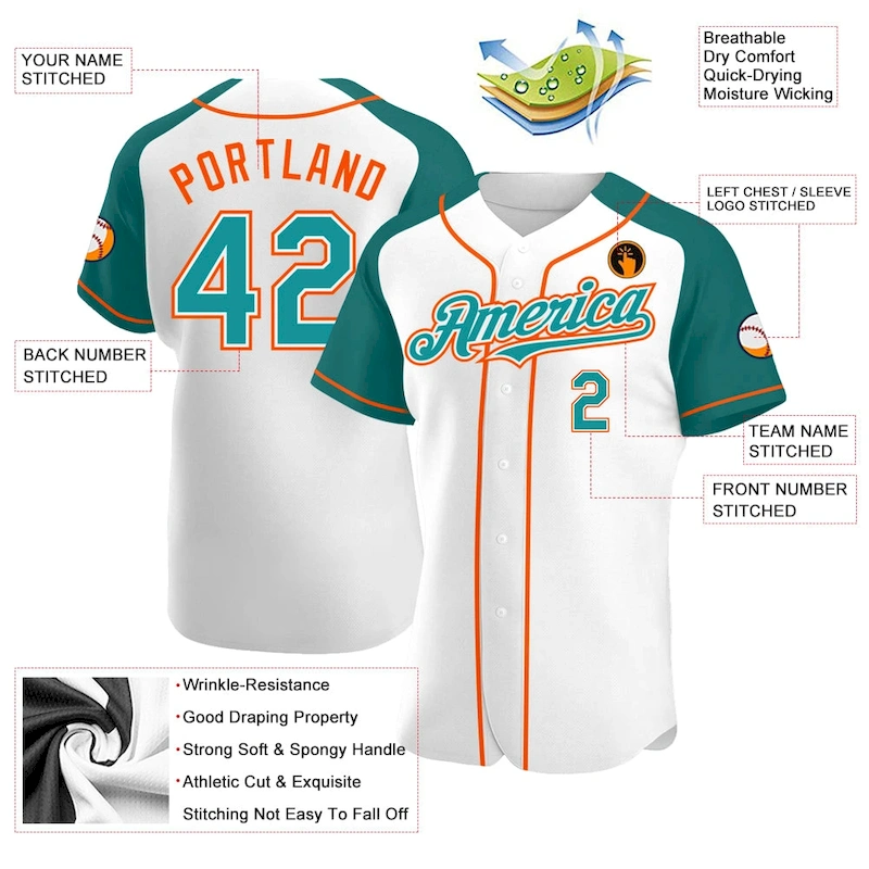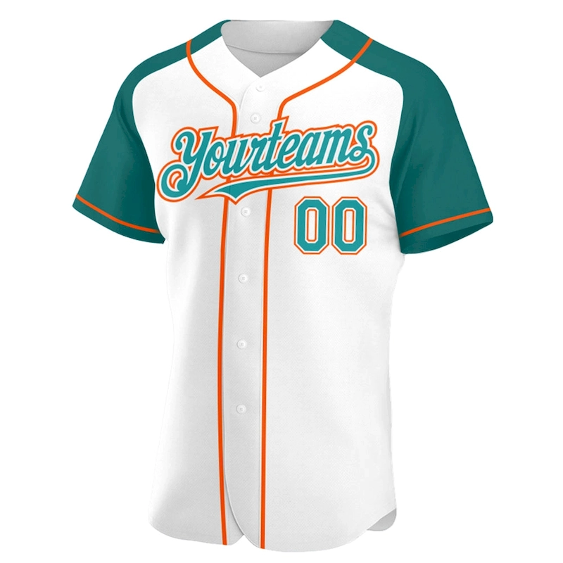 Custom White Teal-Orange Authentic Raglan Sleeves Baseball Jersey